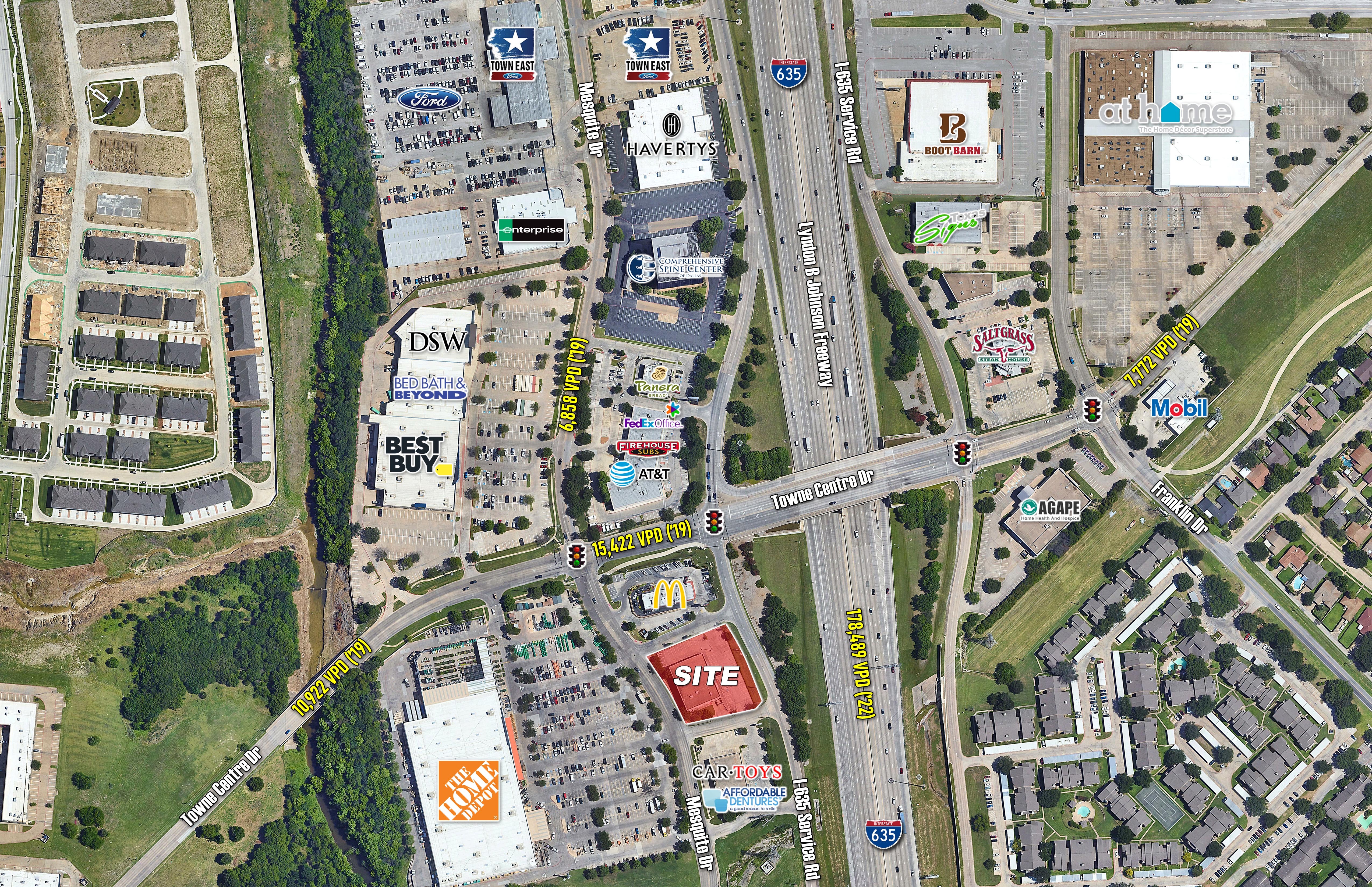 - Frontage along LBJ Freeway/I-635 with exposure to more than 205,592 vehicles per day
